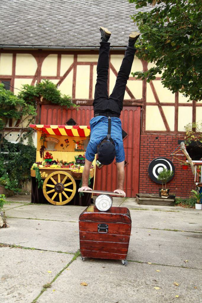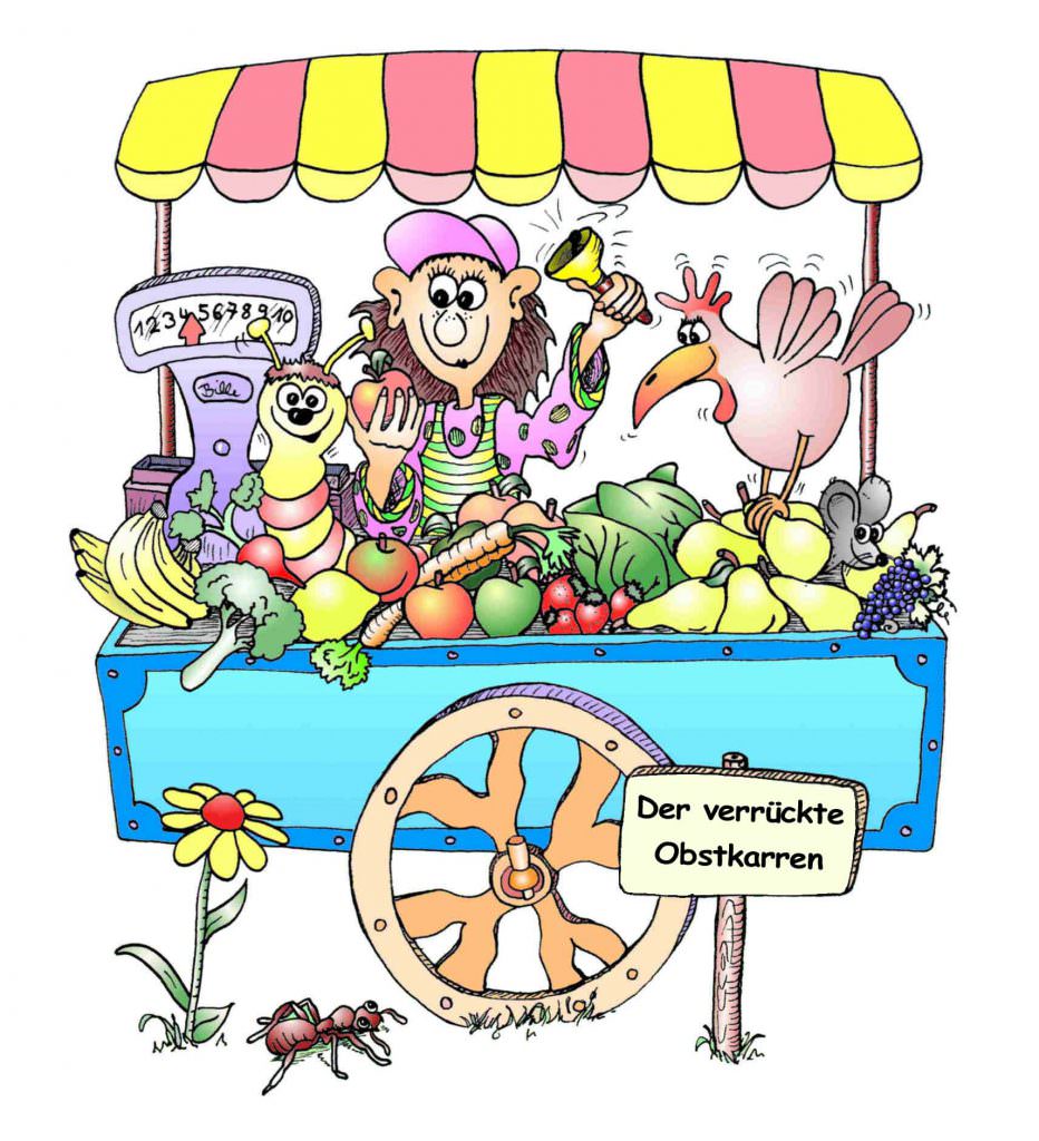 Im Stück „Der verrückte Obstkarren“ wird gesunde, ausgewogene Ernährung und körperliche Bewegung auf spielerische Weise thematisiert: Obst, Gemüse, Vitamine, Ballaststoffe, wenig Kohlenhydrate und wenig Zucker. Durch Artistik, Jonglagen und Balance wird das Stück aufgelockert und die Kinder zur Bewegung animiert.